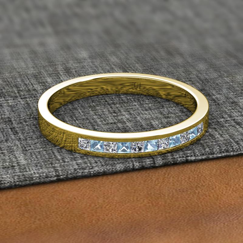 Princess Cut (2 mm) Aquamarine and Diamond Channel Set 11 Stone Womens Wedding Band Stackable 1/2 ctw 14K Yellow Gold More Details ...