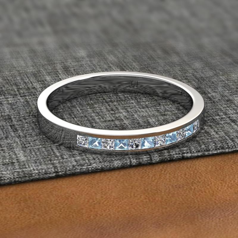 Princess Cut (2 mm) Aquamarine and Diamond Channel Set 11 Stone Womens Wedding Band Stackable 1/2 ctw Platinum More Details ...