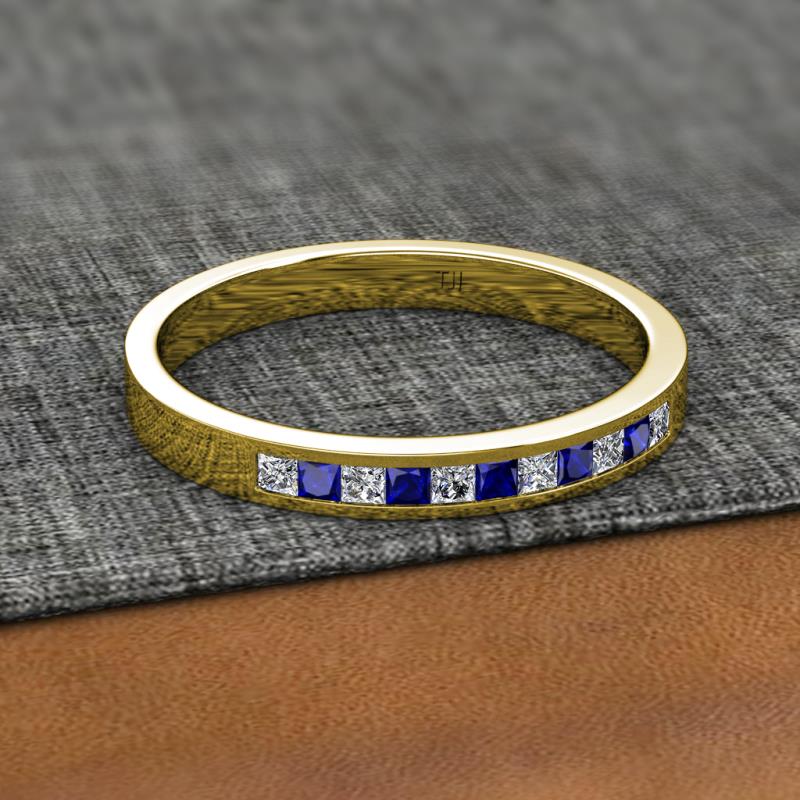 Princess Cut (2 mm) Blue Sapphire and Diamond Channel Set 11 Stone Womens Wedding Band Stackable 1/2 ctw 18K Yellow Gold More Details ...
