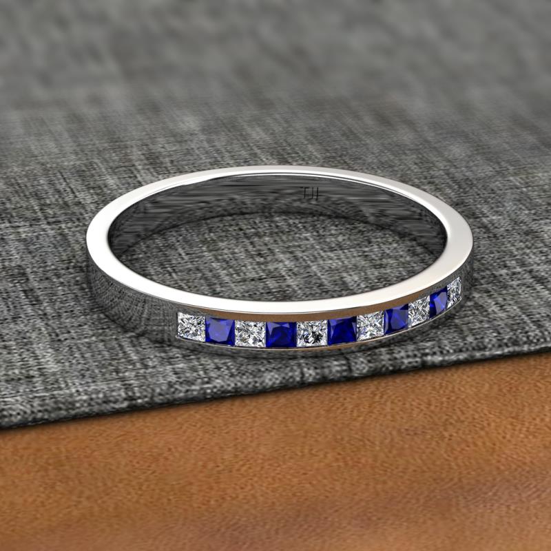 Princess Cut (2 mm) Blue Sapphire and Diamond Channel Set 11 Stone Womens Wedding Band Stackable 1/2 ctw 14K White Gold More Details ...