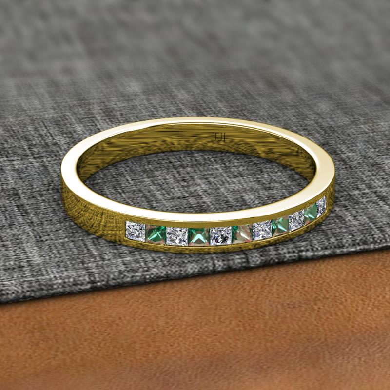 Princess Cut (2 mm) Diamond and Lab Created Alexandrite Channel Set 11 Stone Womens Wedding Band Stackable 1/2 ctw 18K Yellow Gold More Details ...
