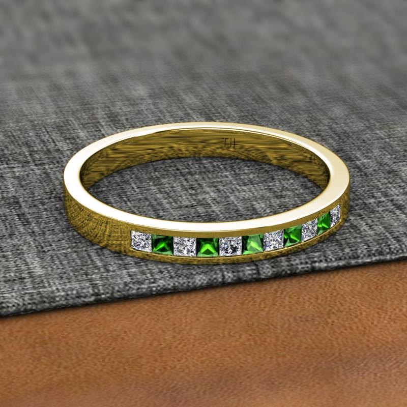 Princess Cut (2 mm) Green Garnet and Diamond Channel Set 11 Stone Womens Wedding Band Stackable 1/2 ctw 18K Yellow Gold More Details ...