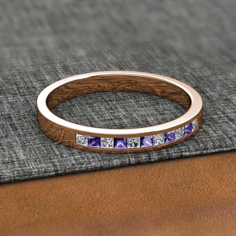 Princess Cut (2 mm) Iolite and Diamond Channel Set 11 Stone Womens Wedding Band Stackable 1/2 ctw 14K Rose Gold More Details ...