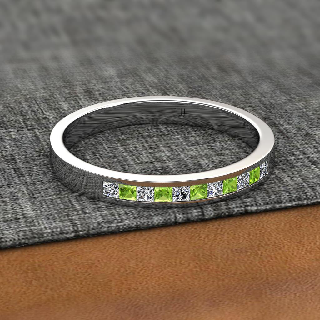 Princess Cut (2 mm) Peridot and Diamond Channel Set 11 Stone Womens Wedding Band Stackable 1/2 ctw 14K White Gold More Details ...