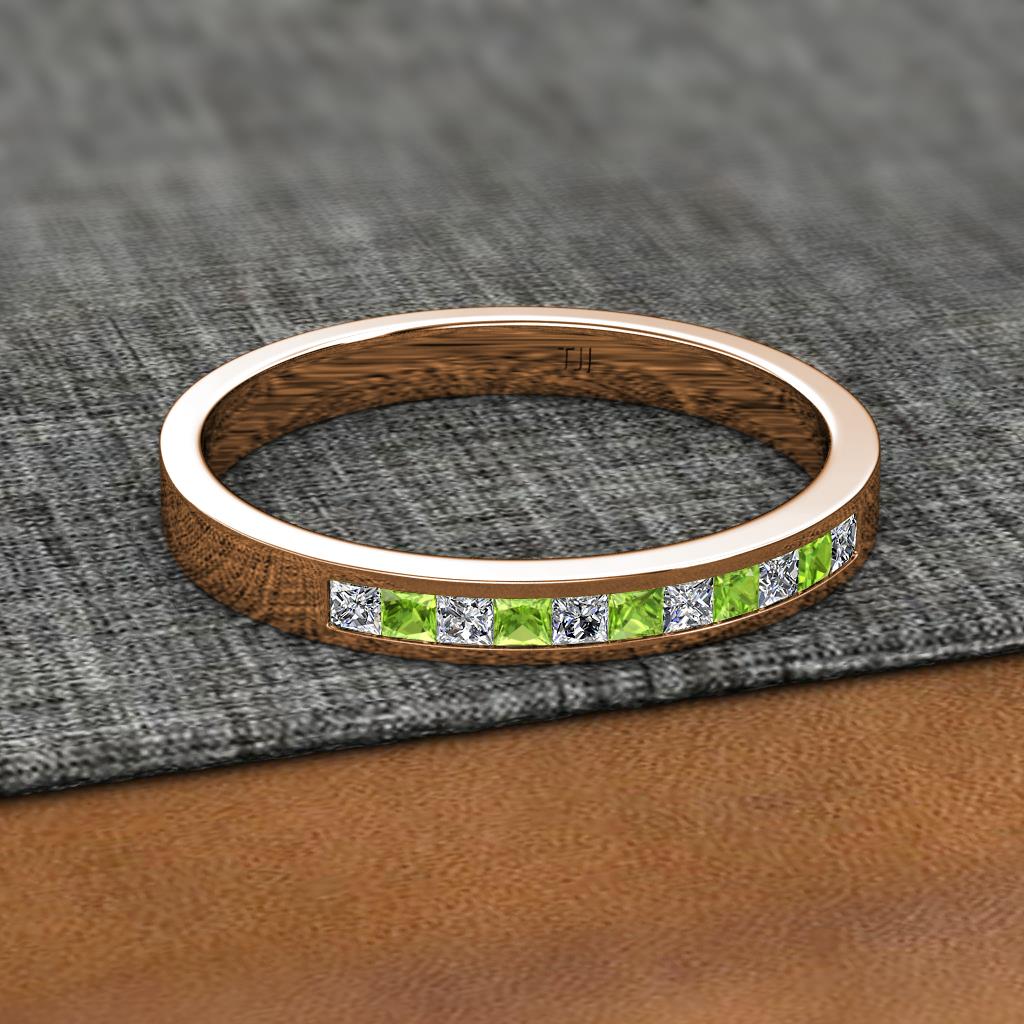 Princess Cut (2 mm) Peridot and Diamond Channel Set 11 Stone Womens Wedding Band Stackable 1/2 ctw 14K Rose Gold More Details ...