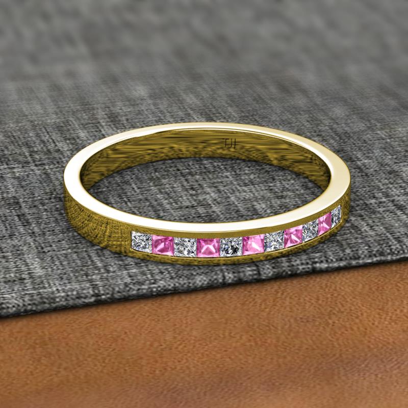 Princess Cut (2 mm) Pink Sapphire and Diamond Channel Set 11 Stone Womens Wedding Band Stackable 1/2 ctw 14K Yellow Gold More Details ...