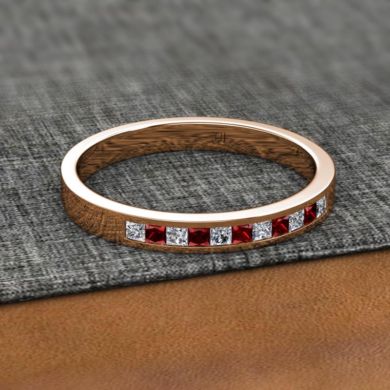 Princess Cut (2 mm) Red Garnet and Diamond Channel Set 11 Stone Womens Wedding Band Stackable 1/2 ctw 18K Rose Gold More Details ...