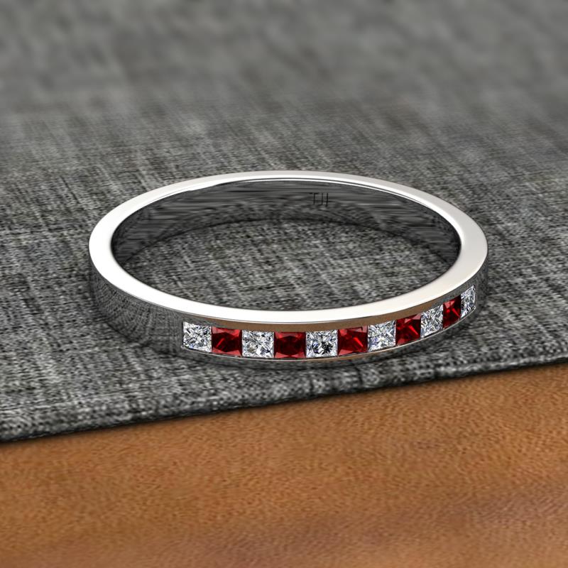 Princess Cut (2 mm) Red Garnet and Diamond Channel Set 11 Stone Womens Wedding Band Stackable 1/2 ctw Platinum More Details ...