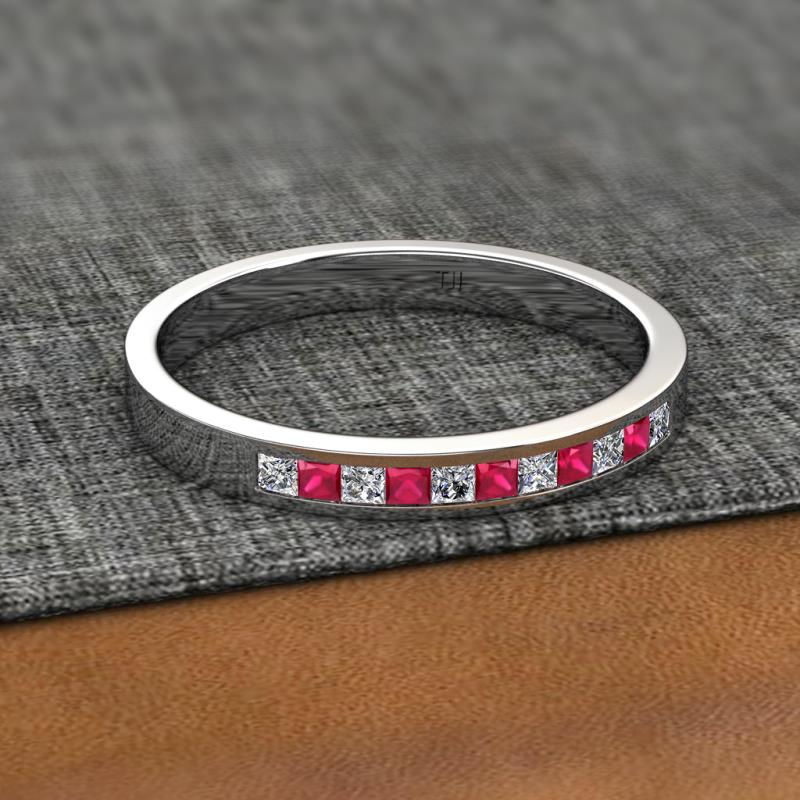 Princess Cut (2 mm) Ruby and Diamond Channel Set 11 Stone Womens Wedding Band Stackable 1/2 ctw 18K White Gold More Details ...