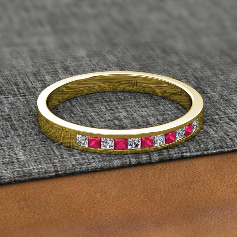 Princess Cut (2 mm) Ruby and Diamond Channel Set 11 Stone Womens Wedding Band Stackable 1/2 ctw 14K Yellow Gold More Details ...