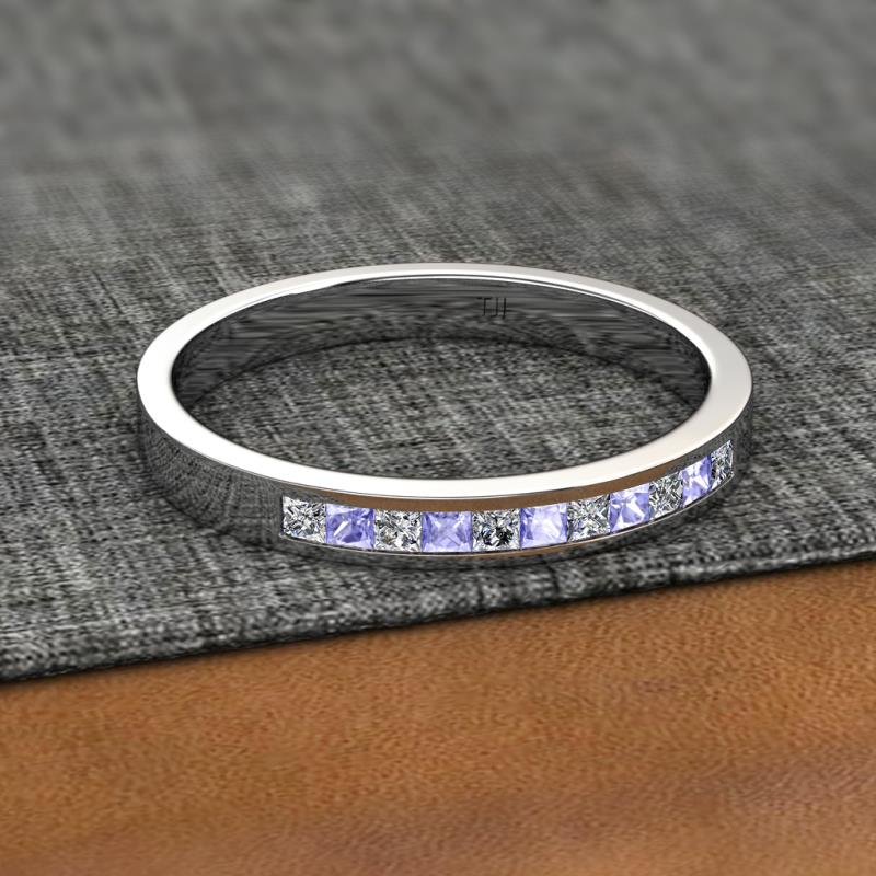 Princess Cut (2 mm) Tanzanite and Diamond Channel Set 11 Stone Womens Wedding Band Stackable 1/2 ctw 10K White Gold More Details ...