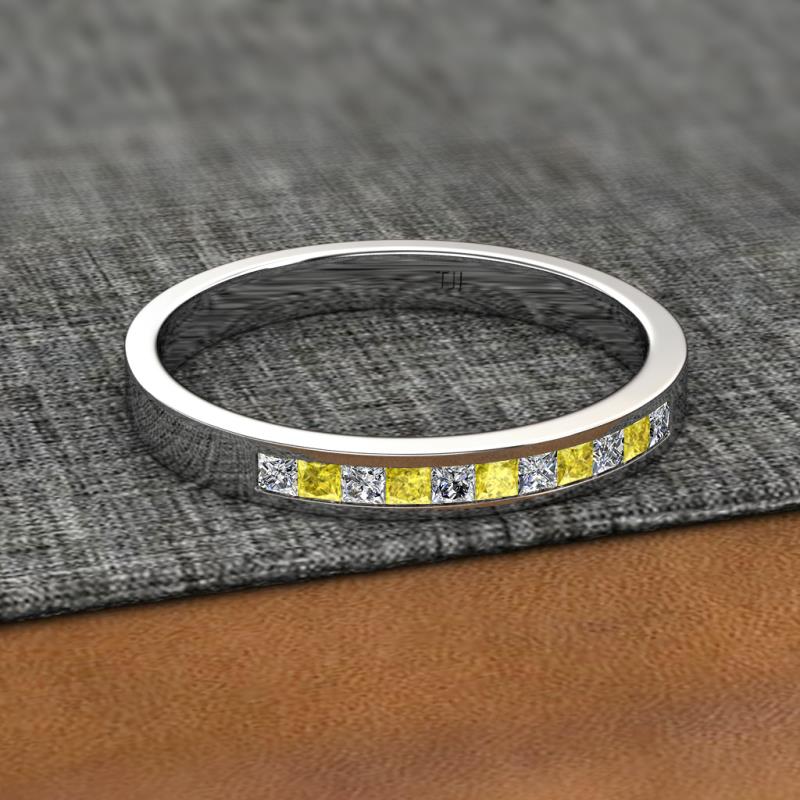 Princess Cut (2 mm) Yellow Sapphire and Diamond Channel Set 11 Stone Womens Wedding Band Stackable 1/2 ctw 18K White Gold More Details ...