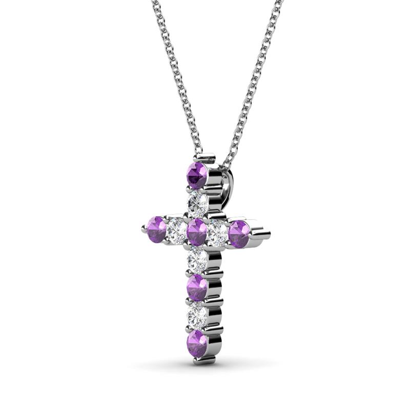 Amethyst and Diamond Womens Cross Pendant Necklace 0.55 ctw 14K White Gold.Included 18 Inches 14K White Gold Chain More Details ...