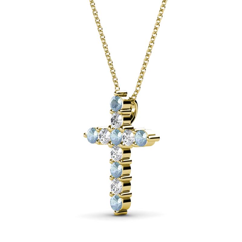 Aquamarine and Diamond Womens Cross Pendant Necklace 0.59 ctw 14K Yellow Gold.Included 18 Inches 14K Yellow Gold Chain More Details ...