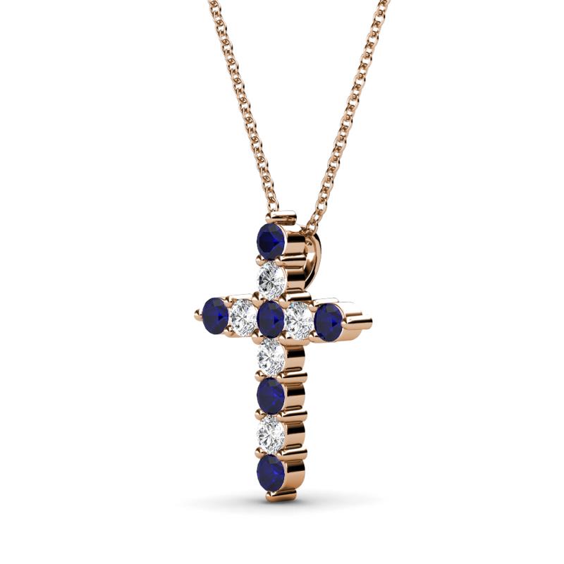 Blue Sapphire and Diamond Womens Cross Pendant Necklace 0.57 ctw 14K Rose Gold.Included 18 Inches 14K Rose Gold Chain More Details ...