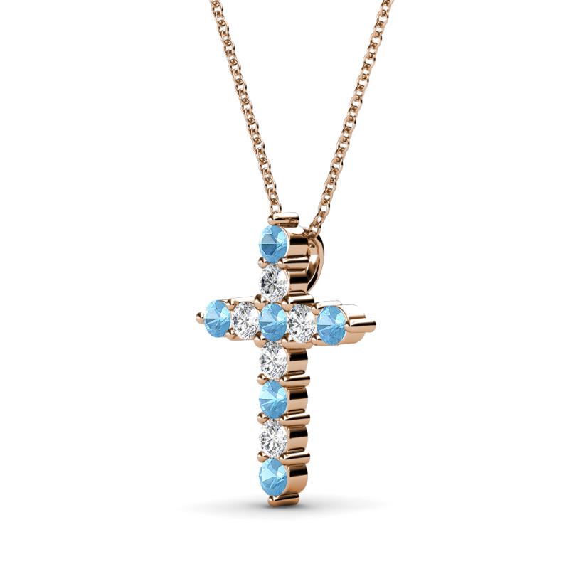 Blue Topaz and Diamond Womens Cross Pendant Necklace 0.61 ctw 14K Rose Gold.Included 18 Inches 14K Rose Gold Chain More Details ...