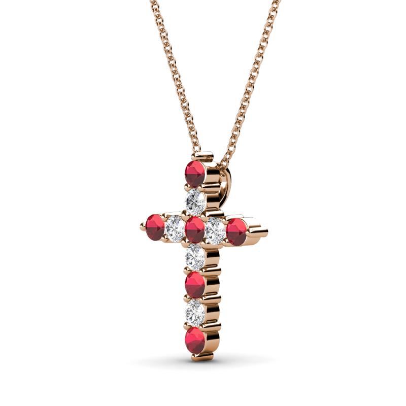 Ruby and Diamond Womens Cross Pendant Necklace 0.57 ctw 14K Rose Gold.Included 18 Inches 14K Rose Gold Chain More Details ...