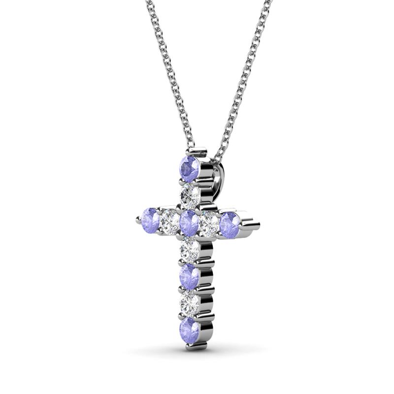 Tanzanite and Diamond Womens Cross Pendant Necklace 0.55 ctw 14K White Gold.Included 18 Inches 14K White Gold Chain More Details ...