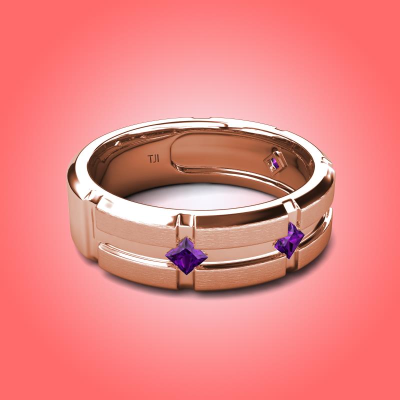 Princess Cut Amethyst 0.36 ctw Kite Set Evenly Spaced in a Flush setting 7.50 mm Four Stone Men's Wedding Band 10K Rose Gold More Details ...