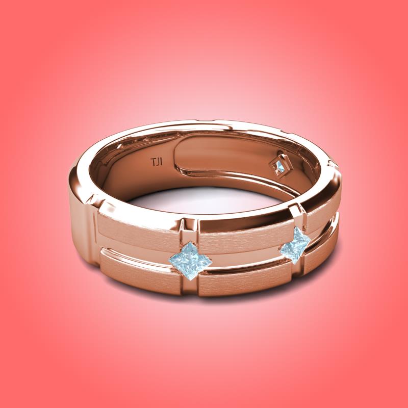 Princess Cut Aquamarine 0.36 ctw Kite Set Evenly Spaced in a Flush setting 7.50 mm Four Stone Men's Wedding Band 18K Rose Gold More Details ...