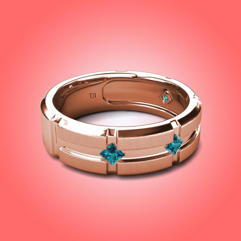 Princess Cut Blue Diamond 0.40 ctw Kite Set Evenly Spaced in a Flush setting 7.50 mm Four Stone Men's Wedding Band 14K Rose Gold More Details ...
