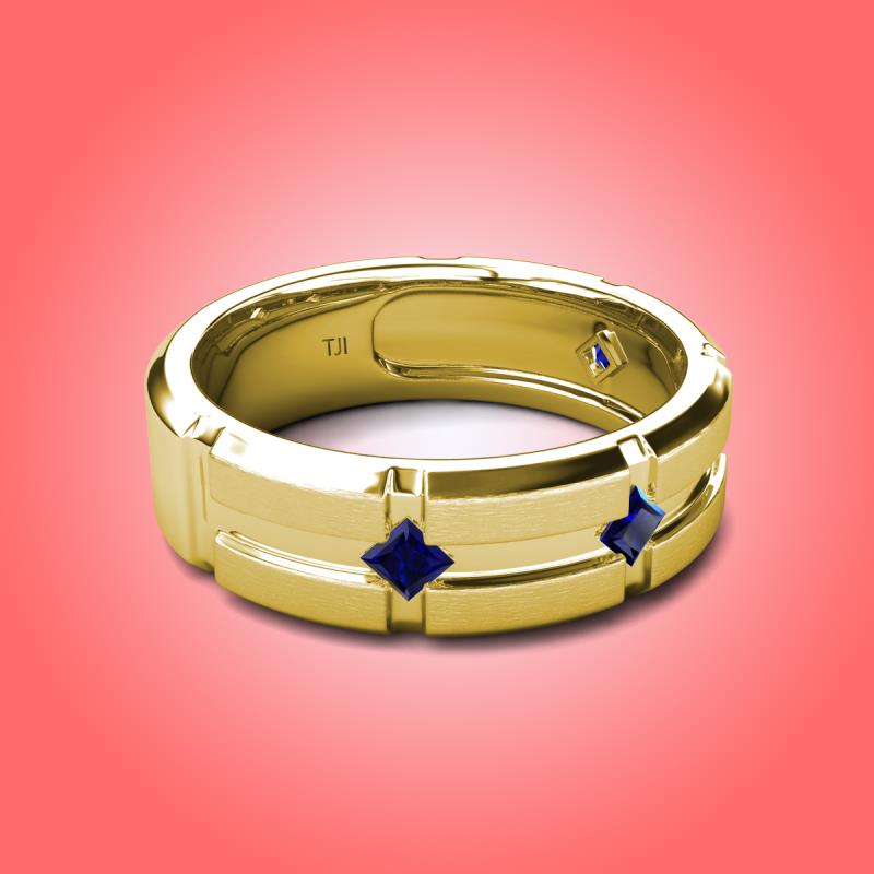 Princess Cut Blue Sapphire 0.36 ctw Kite Set Evenly Spaced in a Flush setting 7.50 mm Four Stone Men's Wedding Band 14K Yellow Gold More Details ...
