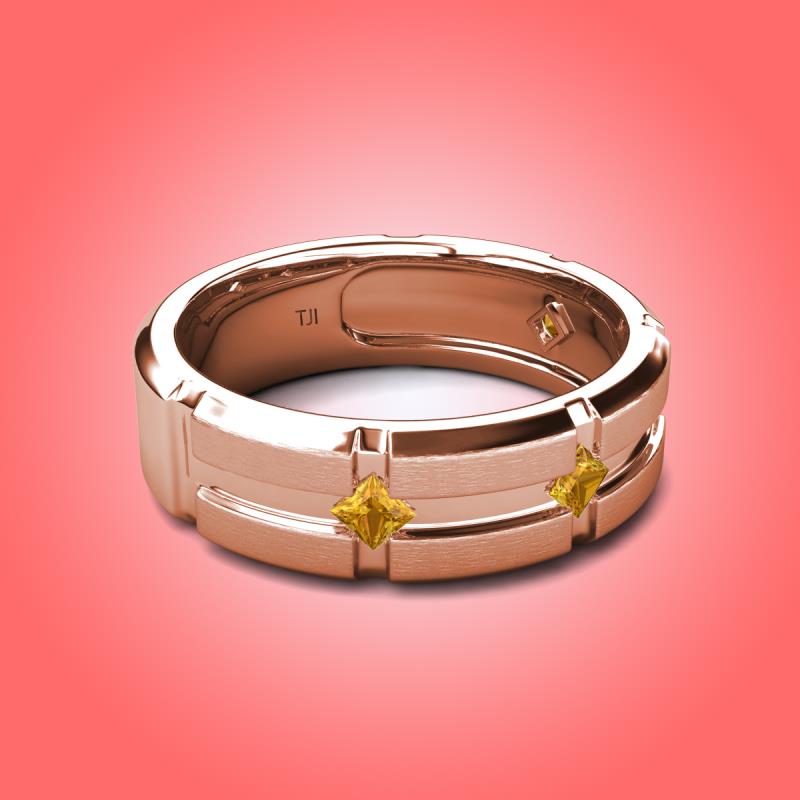 This 7.50 mm Four Stone Men's Wedding Band of 0.36 ctw with Kite Set Evenly Spaced Princess Cut Citrine set in a Flush Setting is a symbol of commitment and promise towards your partner.