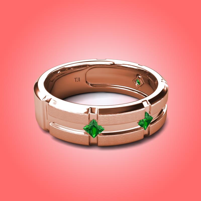 Princess Cut Green Garnet 0.36 ctw Kite Set Evenly Spaced in a Flush setting 7.50 mm Four Stone Men's Wedding Band 18K Rose Gold More Details ...