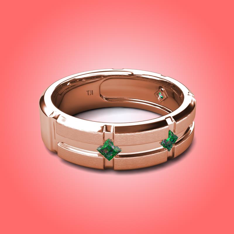 Princess Cut Lab Created Alexandrite 0.36 ctw Kite Set Evenly Spaced in a Flush setting 7.50 mm Four Stone Men's Wedding Band 18K Rose Gold More Details ...