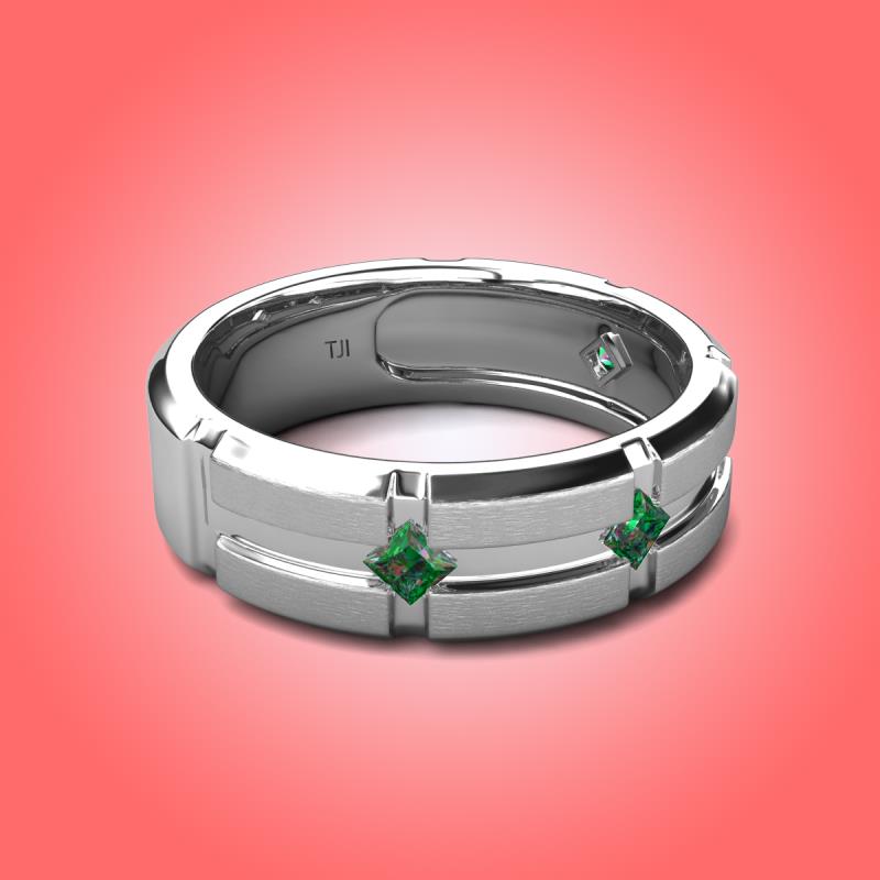 This 7.50 mm Four Stone Men's Wedding Band of 0.36 ctw with Kite Set Evenly Spaced Princess Cut Lab Created Alexandrite set in a Flush Setting is a symbol of commitment and promise towards your partner.