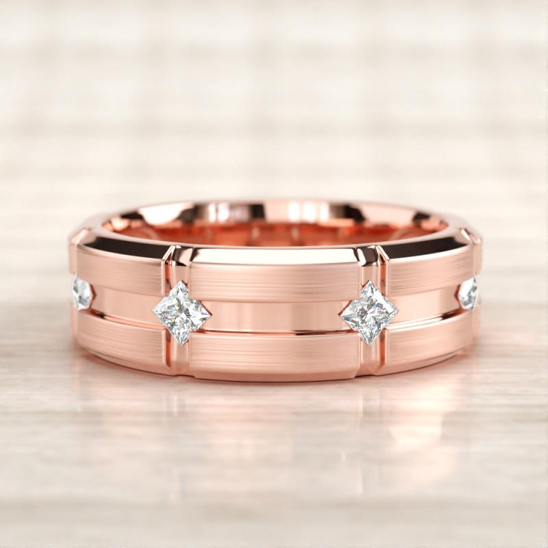 Princess Cut Lab Grown Diamond 0.40 ctw Kite Set Evenly Spaced in a Flush setting 7.50 mm Four Stone Men's Wedding Band 10K Rose Gold More Details ...