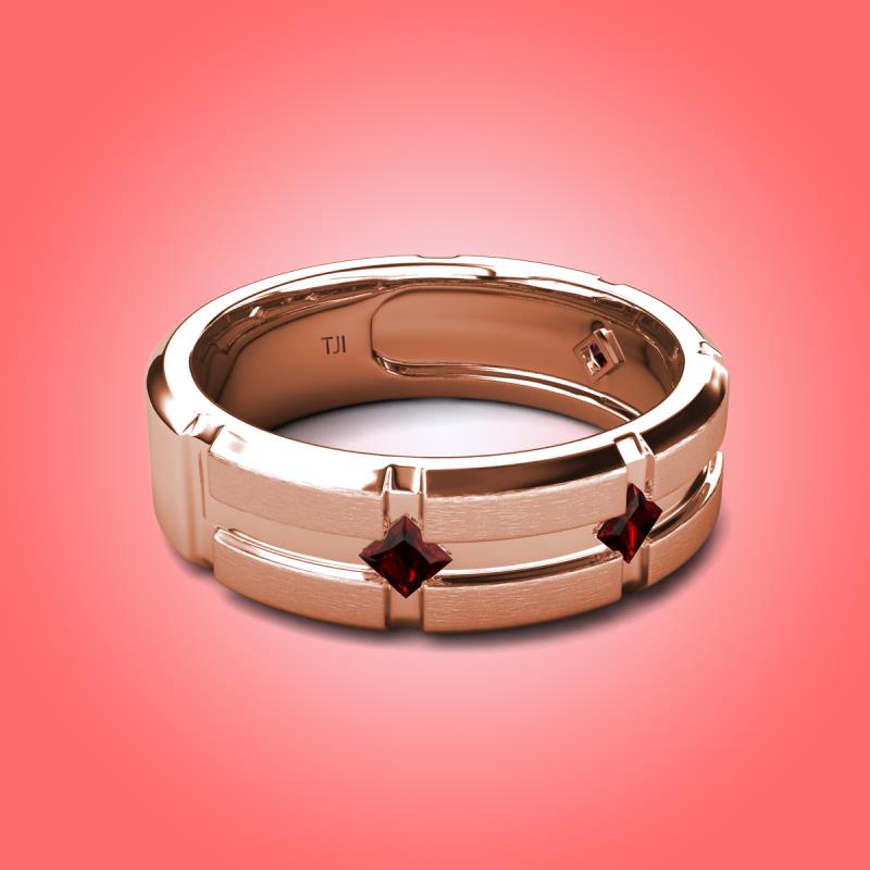 Princess Cut Red Garnet 0.40 ctw Kite Set Evenly Spaced in a Flush setting 7.50 mm Four Stone Men's Wedding Band 18K Rose Gold More Details ...
