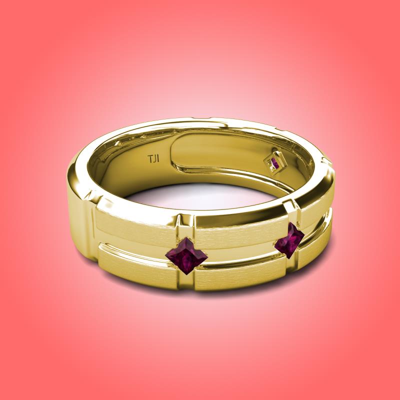 Princess Cut Rhodolite Garnet 0.40 ctw Kite Set Evenly Spaced in a Flush setting 7.50 mm Four Stone Men's Wedding Band 14K Yellow Gold More Details ...