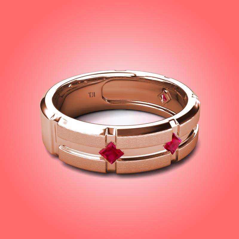 Princess Cut Ruby 0.36 ctw Kite Set Evenly Spaced in a Flush setting 7.50 mm Four Stone Men's Wedding Band 14K Rose Gold More Details ...