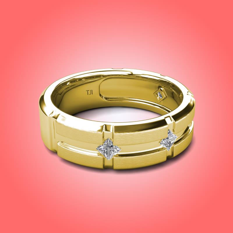 Princess Cut White Sapphire 0.36 ctw Kite Set Evenly Spaced in a Flush setting 7.50 mm Four Stone Men's Wedding Band 10K Yellow Gold More Details ...