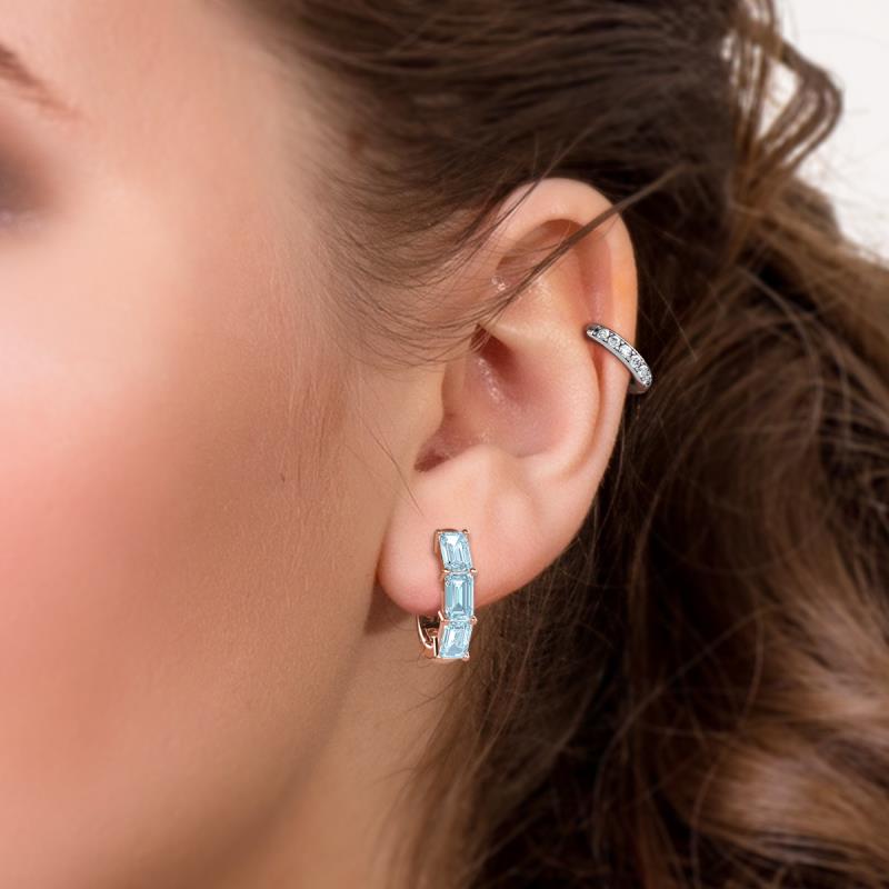 1.50 ctw Emerald Shape Aquamarine (5.00 x 3.00 mm) Women Huggie Earrings set using Prong Setting in 10K Rose Gold. More Details ...