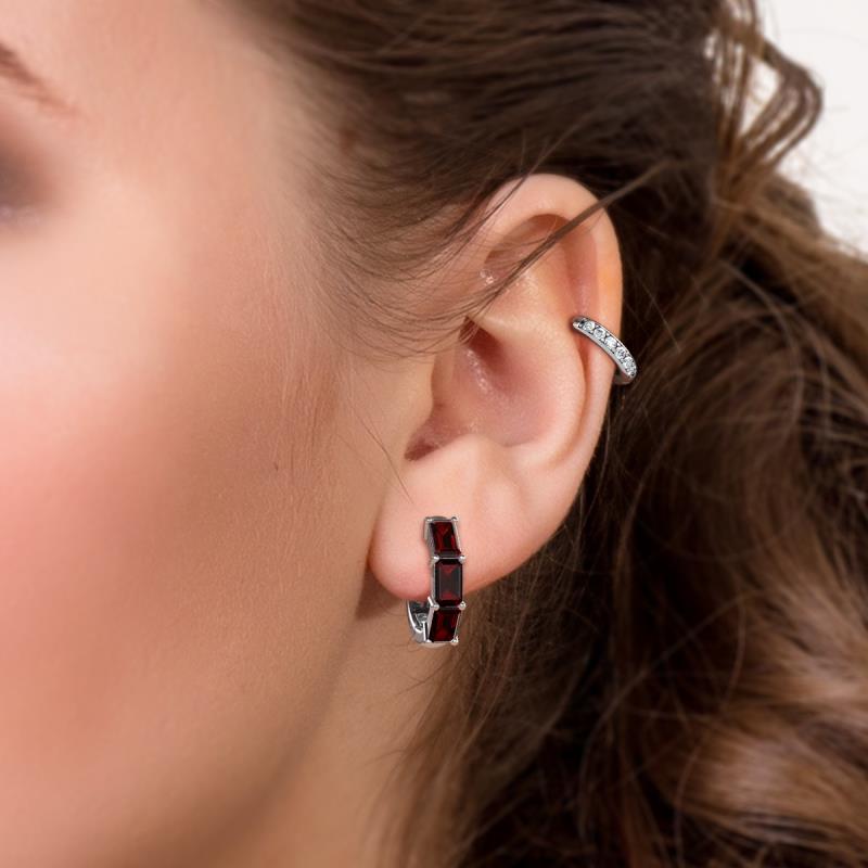 2.40 ctw Emerald Shape Red Garnet (5.00 x 3.00 mm) Women Huggie Earrings set using Prong Setting in Platinum. More Details ...