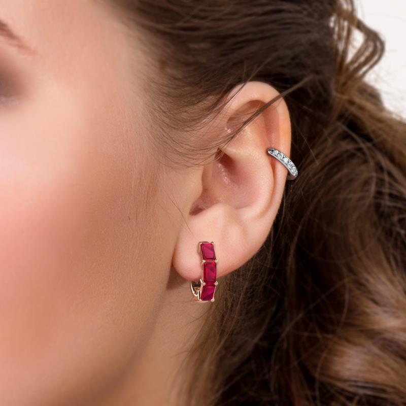 1.80 ctw Emerald Shape Ruby (5.00 x 3.00 mm) Women Huggie Earrings set using Prong Setting in 10K Rose Gold. More Details ...