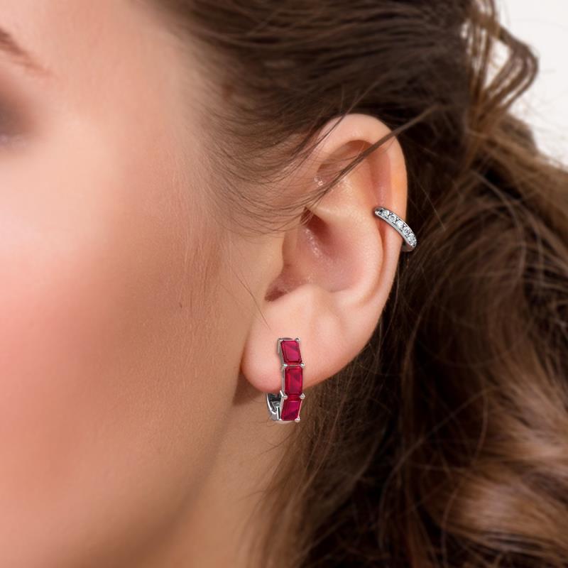 1.80 ctw Emerald Shape Ruby (5.00 x 3.00 mm) Women Huggie Earrings set using Prong Setting in 18K White Gold. More Details ...