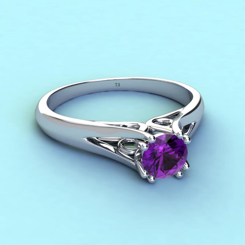Wear this Stunning Solitaire Ring on any occasion and look your best which is mounted with a Amethyst set with the unusual orientation of the Prongs that greatly enhances the split shank of the Ring with side swirl design giving it a swanky style.