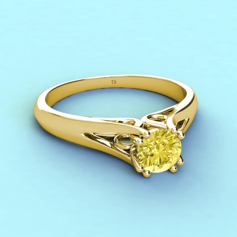 Wear this Stunning Solitaire Ring on any occasion and look your best which is mounted with a Yellow Diamond set with the unusual orientation of the Prongs that greatly enhances the split shank of the Ring with side swirl design giving it a swanky style.