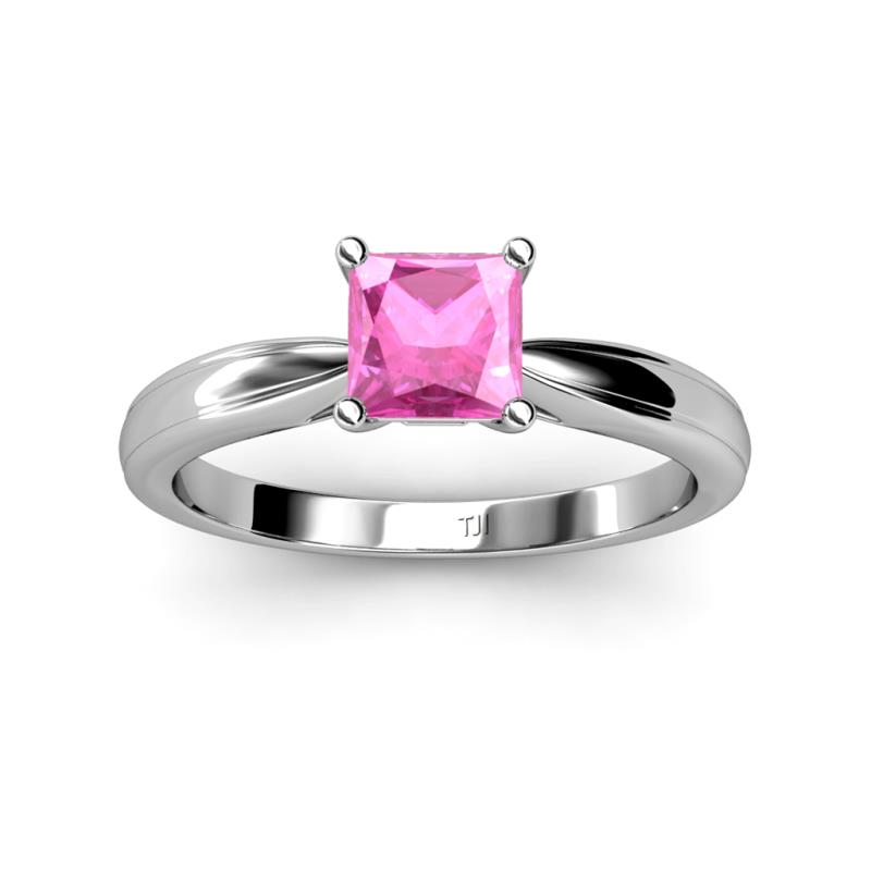 A Stunning Ring which will definitely overwhelm you with a Single Princess Cut Lab Created Pink Sapphire of 0.85 ct held with Prongs representing a beautiful tribute to unity as two people make their commitment to each other.