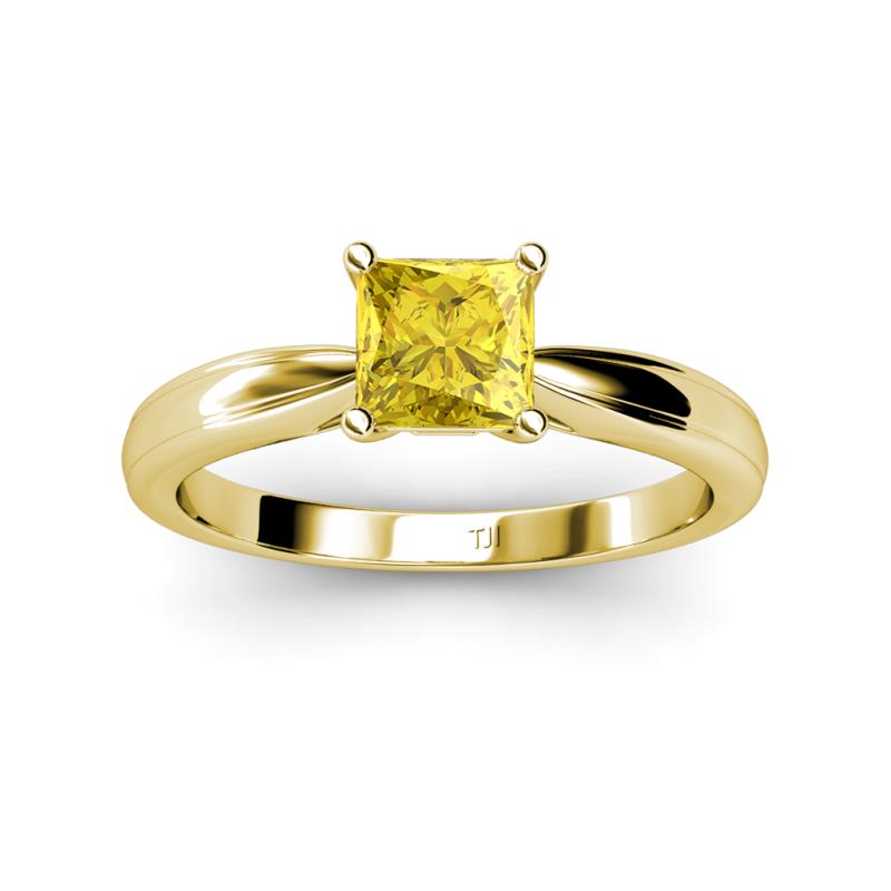 A Stunning Ring which will definitely overwhelm you with a Single Princess Cut Lab Created Yellow Sapphire of 0.85 ct held with Prongs representing a beautiful tribute to unity as two people make their commitment to each other.