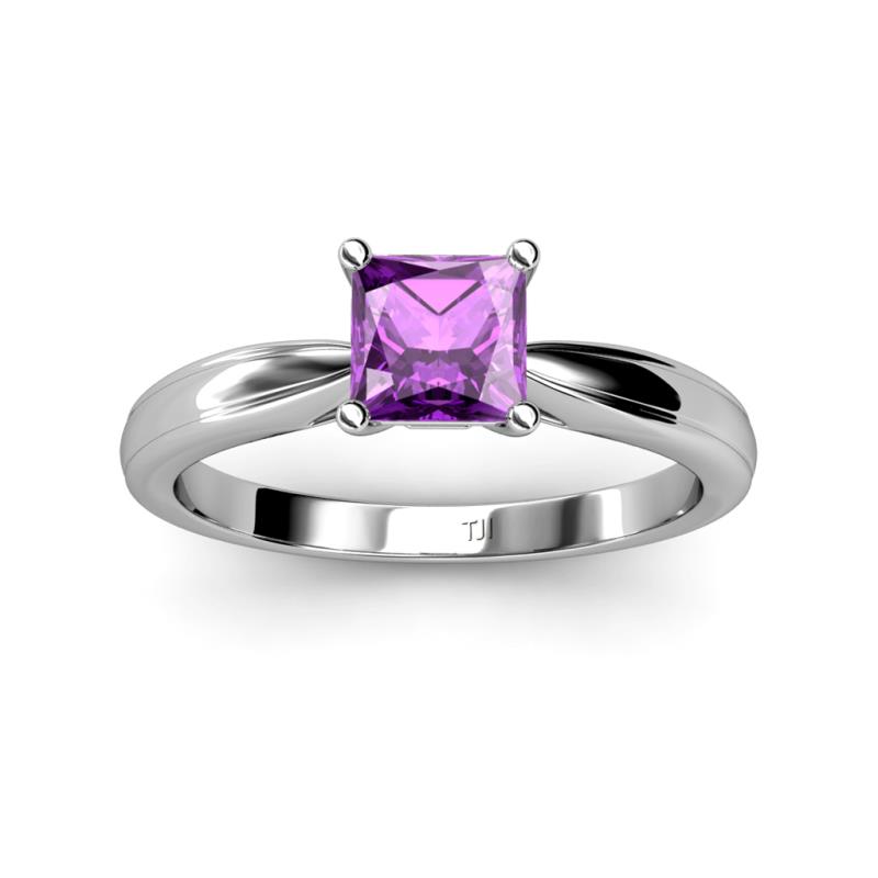 Princess Cut (5.5 mm) Amethyst Womens Solitaire Engagement Ring 0.85 ct 18K White Gold More Details ...