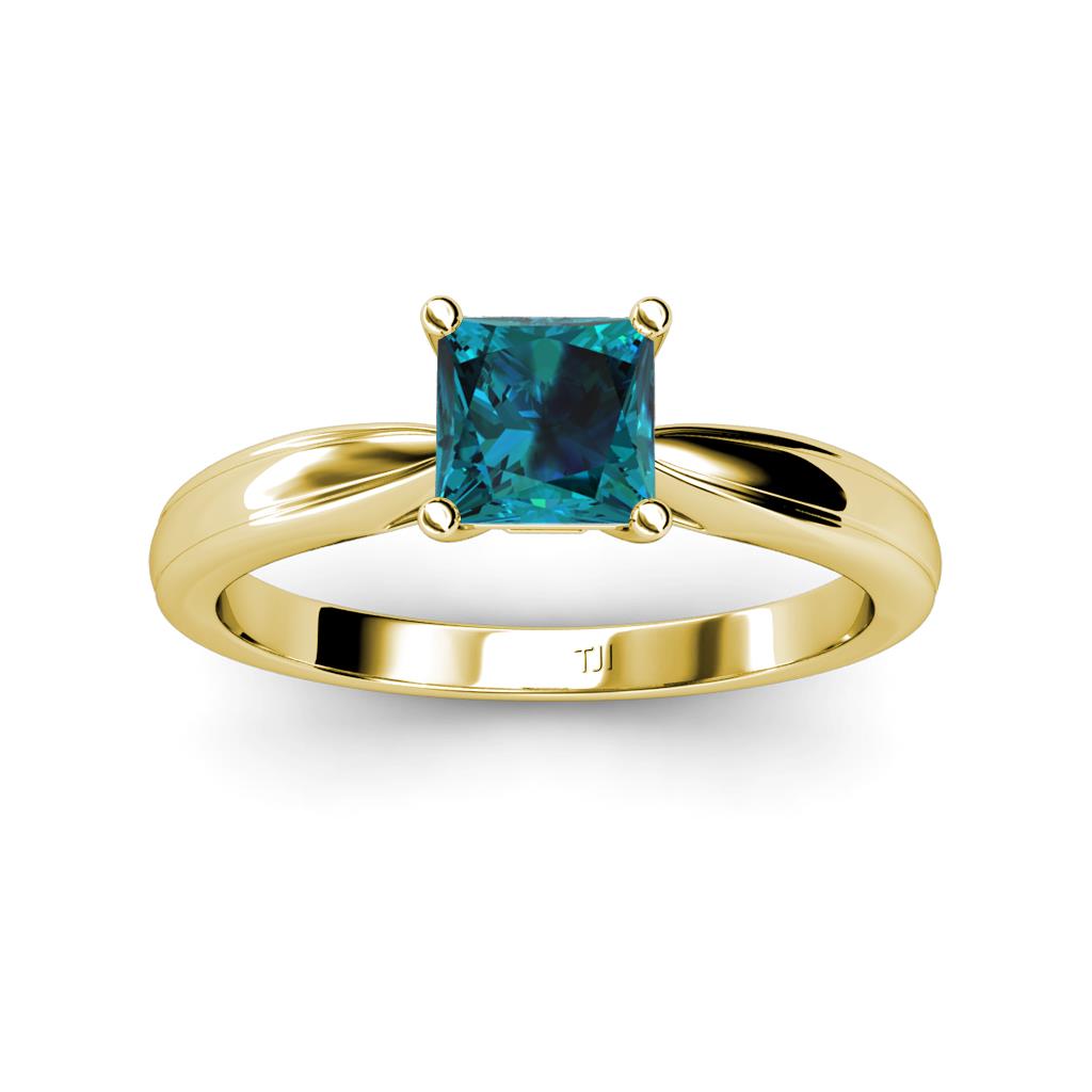 Princess Cut (5.5 mm) Blue Diamond Womens Solitaire Engagement Ring 1.00 ct 18K Yellow Gold More Details ...