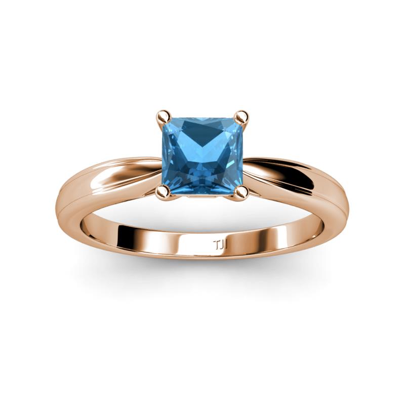 Princess Cut (5.5 mm) Blue Topaz Womens Solitaire Engagement Ring 0.90 ct 14K Rose Gold More Details ...