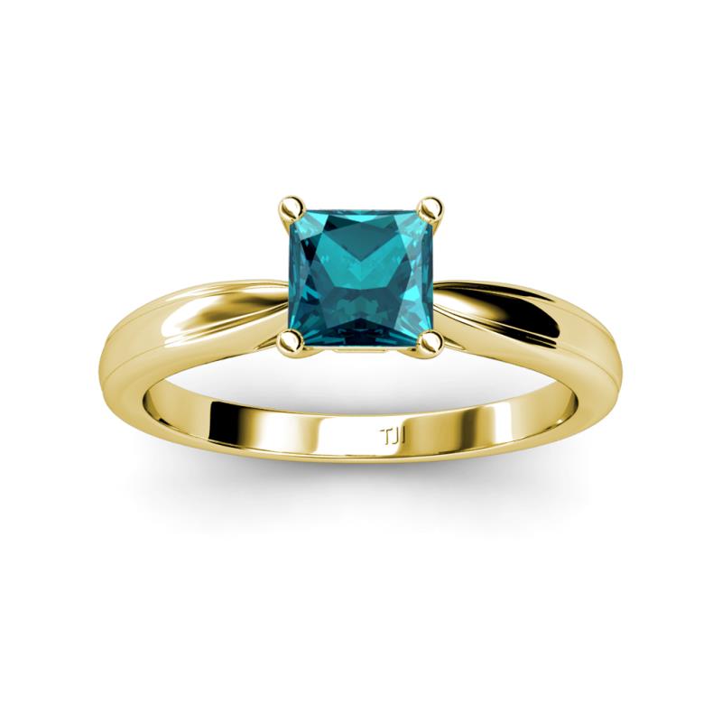 Princess Cut (5.5 mm) London Blue Topaz Womens Solitaire Engagement Ring 0.85 ct 18K Yellow Gold More Details ...