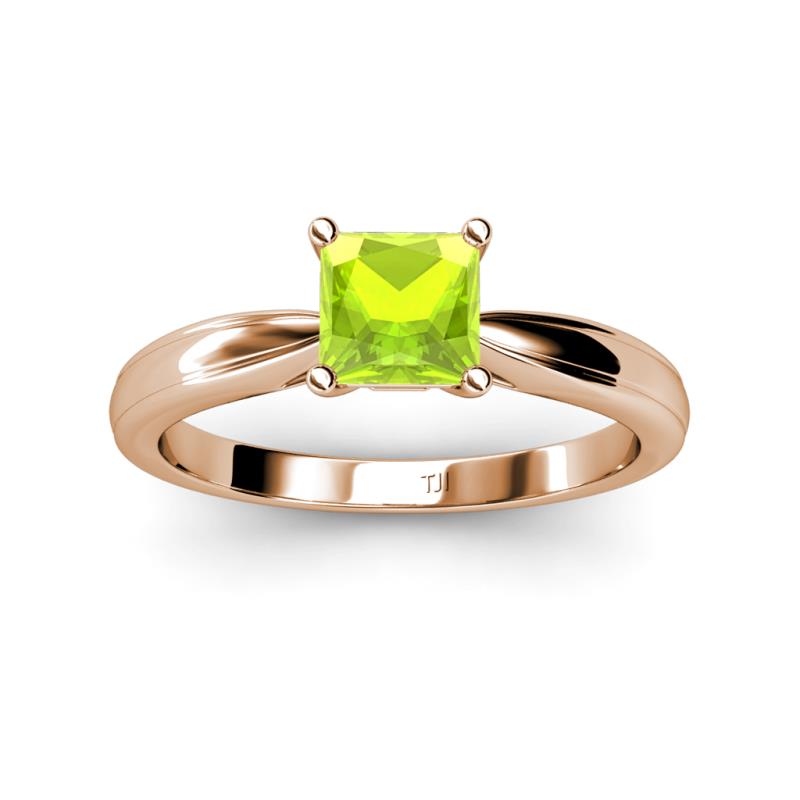 Princess Cut (5.5 mm) Peridot Womens Solitaire Engagement Ring 0.95 ct 18K Rose Gold More Details ...