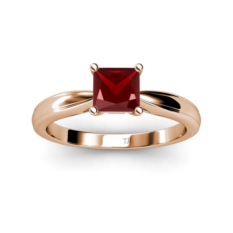 Princess Cut (5.5 mm) Red Garnet Womens Solitaire Engagement Ring 0.95 ct 18K Rose Gold More Details ...