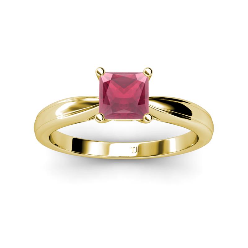Princess Cut (5.5 mm) Rhodolite Garnet Womens Solitaire Engagement Ring 0.95 ct 14K Yellow Gold More Details ...